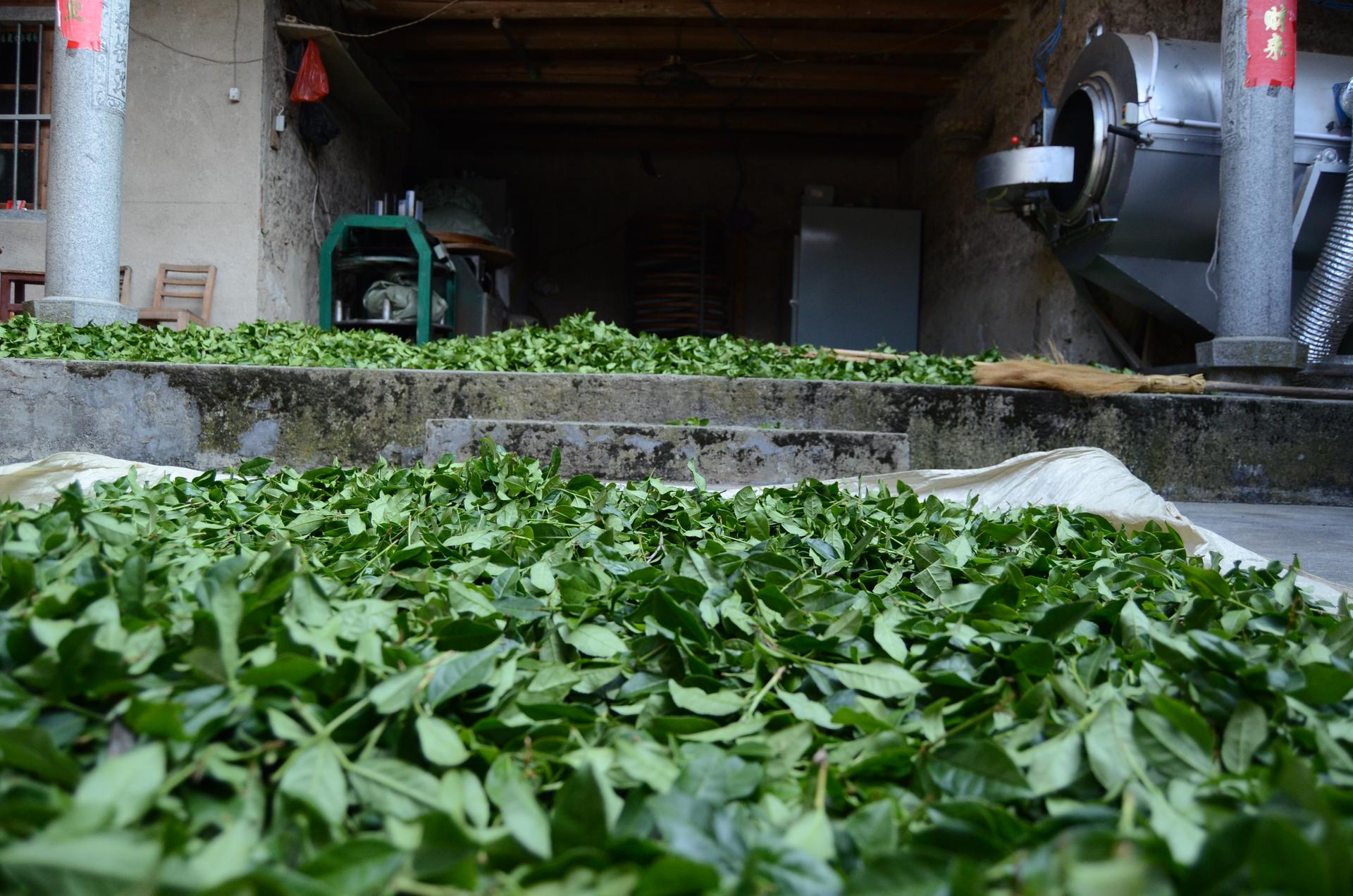 - Подвяливание и встряхивание: Листья слегка подвяливаются и встряхиваются для ускорения ферментации.